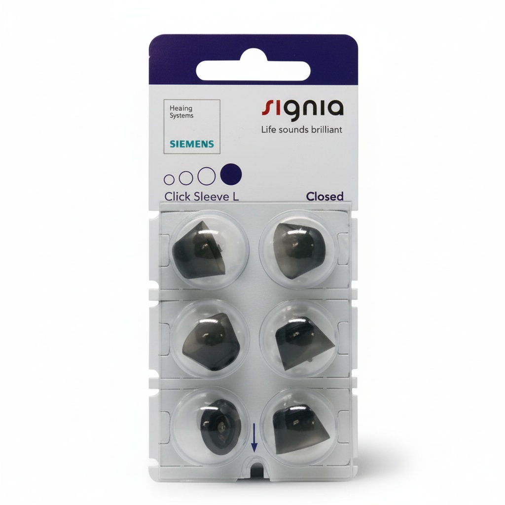 Signia Click Sleeves are domes for hearing aids that can be used with several of Signia’s hearing aids, such as Signia Silk, as well as regular in-the-ear receiver hearing aids. For Signia’s small Silk hearing aids, which are almost invisible inside the ear, the dome is placed on the hearing aid, ensuring a perfect fit for the ear canal. Furthermore, the anti-slip effect ensures that the hearing aids stay in the ear at all times. There are several versions of Signia Click Sleeves to choose from, including both an open and ventilated version.