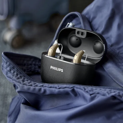 The charging case also helps protect your hearing aids when they are not in use.