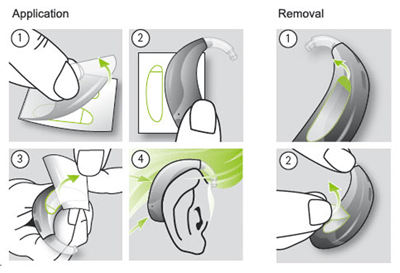 Phonak Stick’n Stay is self-adhesive patches with adhesive material on both sides, which ensures the hearing aid stays put behind the ear. You simply place the patch on the hearing aid and place it behind the ear as usual. The hearing aid is now completely stable and secure.