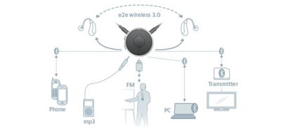 • Connects your hearing aids via Bluetooth to audio sources like TV, VoiceLink, music players, laptops, and mobile phones.